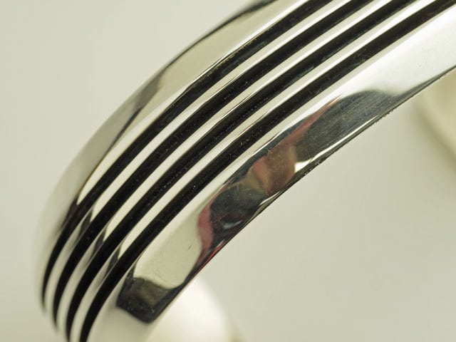 Edgeplate(エッジプレート)デザインは、厚いシルバーの板材、またはキャスト製法で作られた鋳造材の上に、blade(ブレード、薄い板材)を垂直に乗せて並べ、ロウヅケして作られます。