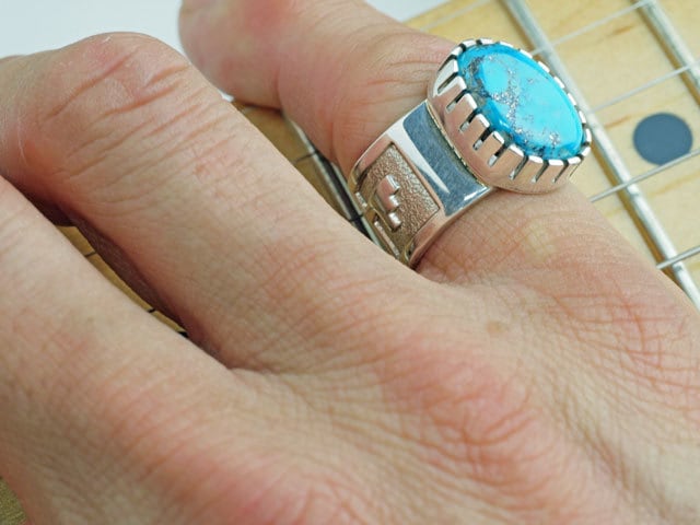 ナバホ 01-0144 アルヴィン・ツォー作 モレンシー・ターコイズ(ナチュラル)リング 13号